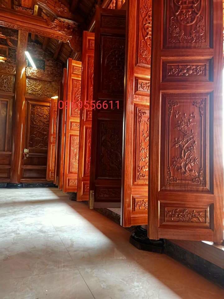 • Cửa bức bàn được chạm khắc bởi những người thợ thủ công giỏi. Với các họa tiết “tùng – cúc – trúc – mai”. Hiên được bố trí thêm nhiều đèn lồng và các kẻ hiên được đục chạm nhiều hoa văn nổi bật.